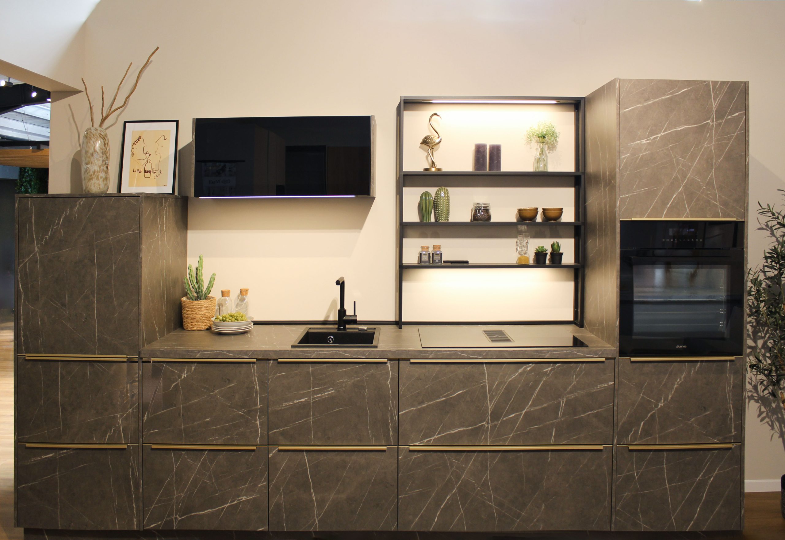 Wir machen mal wieder Platz für etwas Neues bei uns im Küchenstudio und verkaufen deshalb diese zeitlose Küche zu einem unschlagbaren Preis! Die Küche umfasst: Die Küche umfasst: • Kochfeld mit Muldenlüfter • Backofen • Geschirrspüler • Kühlschrank • Waschbecken + Wasserhahn • Beleuchtung • Mülleimersystem • großer Besteckkasten • Regalsystem • u.v.m… Die Küche befindet sich in einwandfreiem Zustand. Alle Geräte sind neu und unbenutzt. Es handelt sich dennoch um eine Ausstellungsküche, somit können kleinere Gebrauchsspuren/Kratzer möglich sein. Gerne könnte Ihr bei uns im Küchenstudio vorbeikommen und Euch die Küche ansehen. Gekauft wie gesehen. Der Preis beträgt 6.999€ mit Montage.